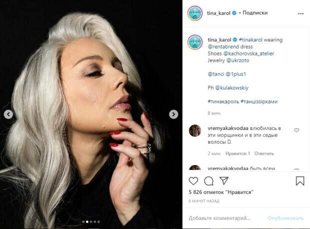 Ее волосы поседели, на лице появились старческие морщины и лишь стройные ноги знаменитости в сетчатых чулках выдают то, что Кароль – не старуха, а красивая молодая женщина. Посмотреть эту публикацию в Instagram Публикация от Тина Кароль (@tina_karol) 2 Ноя 2020 в 2:43 PST Фанатам понравился новый образ звезды, о чем они и написали в комментариях. "Секси Бабушка
