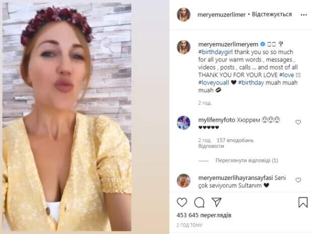 Узерли улыбалась и позировала на камеру. «Большое вам спасибо за все ваши теплые слова, сообщения, видео, посты, звонки... и больше всего спасибо за любовь» - подписала видео звезда. Стоит отметить, что Узерли переборщила с «пластикой» лица в соцсети. Как известно, при помощи фильтров в Инстаграм можно изменить лицо до неузнаваемости. Так получилось и с Мерьем. На видео ее лицо выглядело кукольным. Несмотря на это, поклонники оставили ей массу комплиментов. «Я так сильно тебя люблю», «Икона», «Я вас обожаю!», «Я люблю тебя, ты мой вдохновитель по жизни и помогла мне справиться с плохими людьми и ситуациями», «Ты выглядишь так красиво», «С Днем Рождения! Вы заслуживаете всяческих наград и успехов в жизни», «Цветочек», «Прекрасна», «Красавица», - пишут пользователи сети. Как известно, 12 августа звезде исполнилось 37 лет. Напомним, что раздетая Мерьем Узерли соблазнительно выгнулась, заставив всех покраснеть: "Sultan!". А еще Politeka сообщала, что Мерьем Узерли показала изуродованное лицо вблизи: от Роксоланы нет и следа. Также Politeka писала, что Мерьем Узерли показала свои прелести под тонким кружевом: "Бесстыжая Роксолана".