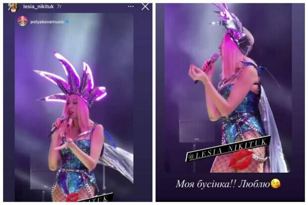 Кадрами с концерта она поделилась в Instagram. На сцену она вышла в экстремально соблазнительном образе. На исполнительнице – облегающий латексный купальник бирюзового цвета. Латекс блестит, притягивая взгляды к наряду своей обладательницы. Образ довершают серебряные босоножки, а также причудливая корона-кокошник на голове Поляковой. Со сцены она успела передать привет украинской телеведущей Леси Никитюк и ее родителям. "Вы мне как родные, Мы соседи. Еще у нас есть общая подружка. Леся Никитюк. Она вчера была здесь, но меня не дождалась. Но я знаю, что здесь ее родители. Так что давайте им похлопаем", - заявила Полякова. На послание Поляковой обратила внимание Леся Никитюк, которая опубликовала кадры выступления певицы. При этом она подписала их: "Моя бусинка, люблю". И в конце надписи оставила смайлик. Напомним, Полякова больше не "Королева ночи", украинцы ахнули от новой Оли. А еще Politeka писала, что Полякову прорвало после Дня Независимости, высказала все, что думает. Также Politeka сообщала, что Полякова после громкого конфликта с Кароль высказалась о ее вокальных данных.