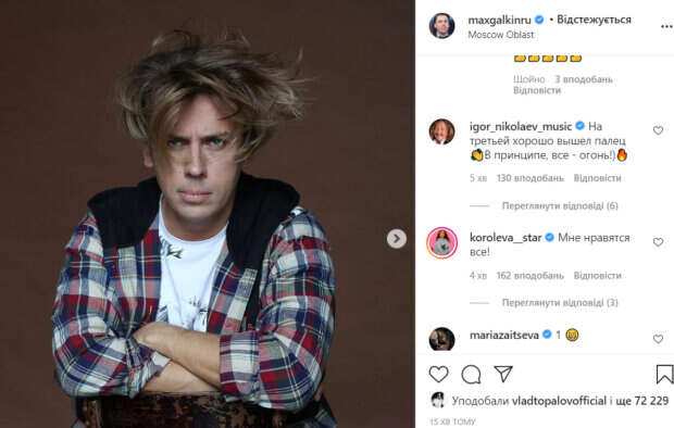 На его голове был откровенный бардак, который, впрочем, артиста не смущал. На других фото комик обаятельно улыбался. Он выглядел моложе своих лет. Отросшие волосы удачно гармонировали с молодежным образом артиста. «Какая фотка лучше из четырёх?», - подписал фото Галкин. В комментариях Галкину оставили массу приятных слов. Он нарвался на комплименты от многих звездных коллег. Особенно фото понравились певице Наташе Королевой, которая написала под постом: «Мне нравятся все!». Другие поклонники не скупились на добрые слова. «Не кокетничай, все хороши!», «Огооо! Я выбираю Первую...Спасибо, Максим!», «Все шикарны», «Во всех ты, душечка, фотках хороша», «2-я фотка мне симпатичнее всех. Есть в ней и самоирония, и самосохранение своего я и своего мира», «Красавец! Со всех сторон и на всех фото», - пишут пользователи сети. Напомним, что Галкин показал, что его семилетний сын в каске вытворяет под песни Пугачевой: "Все по-взрослому". Как сообщала Politeka, в Сети показали роскошный замок Галкина с высоты, который он возвел для Пугачевой: "На миллиард". Также Politeka писала, что Галкин засветил моложавую Пугачеву в кокетливой шляпке перед выходом в свет: "С бабулей!".