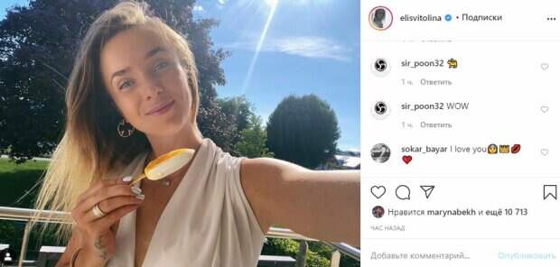 Известная украинская теннисистка Элина Свитолина показала свежий летний образ На фото Элина показала себя в легком платье, под которым не было белья, а образ дополнила стильной серьгой. Свитолина улыбалась на камеру, а сама в руках держала мороженое. Волосы красотка решила оставить распущенными, а позировала на фоне солнышка и деревьев.