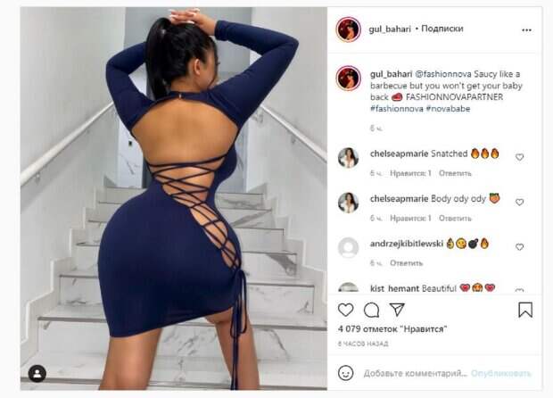 Красотка стояла на ступеньках и без смущения хвасталась эффектными формами. Об этом пишет Politeka.net со ссылкой на страничку знаменитости. "Дерзкая, как барбекю. Но ребенка не вернуть", - написала звезда под фото. Фанаты поставили более 4 тысяч лайков и написали комментарии: "Схватили", "Сказочно", "безумно красивая", "Красавица, так летай", "Выглядит великолепно", "Никогда не ходил так по лестнице .... как это?", "Ты замечательная", "Мне нравится твоя спина в темно-синем. Красиво", "Удивительно, я потрясен", "У тебя есть это платье красного цвета?", "Я бы сказал вам, что вы все, но вы этого не цените", "Горячо!". Мы писали, что популярная модель Гюль Бахари взбудоражила кадрами из отдыха. Бахари предстала в бело-серебристом купальнике, который совсем не скрывал ее достоинства и довольно удачно их подчеркнул. Напомним, турецкая Кардашьян сжала аппетитных "подружек" узким топом, манящий кадр А еще Politeka писала, что турецкая Кардашьян без белья приковала взгляды к космическому декольте на шнуровке Также Politeka сообщала, что турецкая Кардашьян превзошла Ким бюстом шестого размера в "дырявом" платье