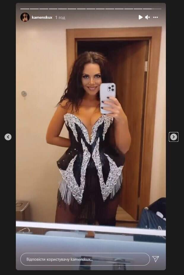 На новом сторис Настя показалась в черно-белом узком корсете. Наряд эффектно подчеркнул формы красотки. Каменских стояла перед зеркалом, повиляв телом, чтобы показать свою красоту. Настя улыбалась, снимая себя на телефон. До этого красотка в сторис показывала свой завтрак. Как можно заметить, Настя правильно питается, ведь на тарелках лежали овощи и зелень. Фанаты не смогли поставить лайки под публикацией в сторис Инстаграм или написать комментарии, ведь таких функций там нет. Напомним, детектив "Маски" Каменских в миниатюрном платьице блеснула формами в эффектном вырезе А еще Politeka писала, что Анастасия Каменских в черных штанах в облипку выпятила свою "Ким" у роскошного авто Также Politeka сообщала, что Леся Никитюк поразила образом на фоне Каменских и разоткровенничалась, как порадовала Притулу