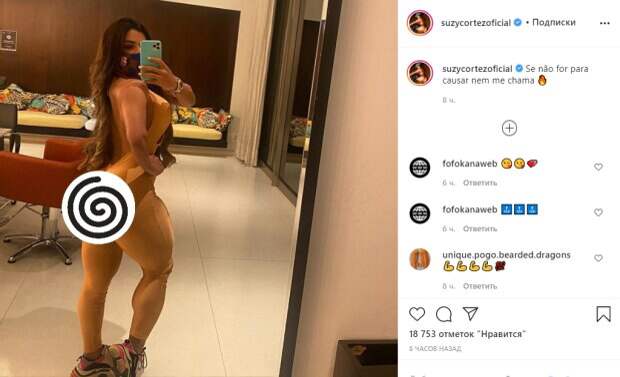 На опубликованном кадре модель представала в обтягивающем костюме, который создавал иллюзию полной наготы. Такой образ фигуристой модели собрал немало лестных комментариев и сотни лайков. Бразильская фитнес-модель, звезда социальных сетей и телеведущая спортивного канала стала популярной после победы на конкурсе «Мисс Бум Бум», где оценивают национальное достояние Бразилии – женские ягодицы. Сьюзи является большой поклонницей футбольного клуба "Барселона", а ее любимым игроком является Лионель Месси. Ранее мы сообщали, что Кортес опубликовала фото, на котором позировала в прозрачном белье. Соблазнительный наряд идеально подчеркнуло феноменальные размеры Сьюзи. Ну а изюминкой снимка стала та самая часть тела, которая и прославила модель на весь мир. Ее Сьюзи даже пришлось придерживать руками. Напомним, хозяйка самых красивых ягодиц показала пышные прелести в розовом белье А еще Politeka писала, что хозяйка самых красивых ягодиц без трусиков устроила шалости на полу А еще Politeka писала, что хозяйка самых красивых ягодиц без штанов показала "титул" прямо на балконе