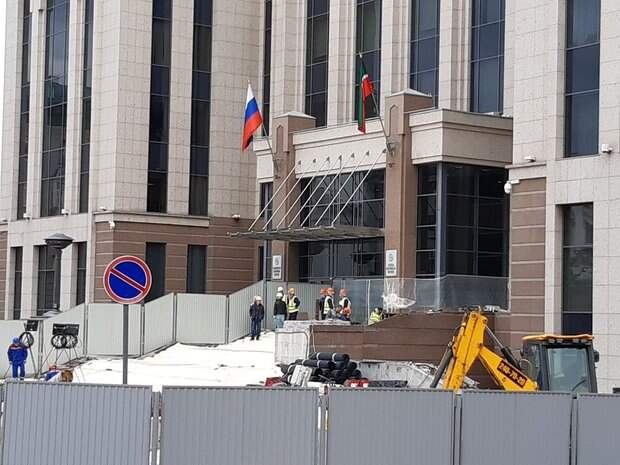 Возле здания Кабинета министров Татарстана начались строительные работы, сообщает корреспондент «Реального времени». Территория огорожена, на место привезены стройматериалы. Для рабочих установили строительный вагончик. Фото: realnoevremya.ru/Ирина Плотникова Подробности о том, какие именно работы проводятся у здания, выясняются.