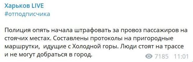 Харьковчанин рассказал, как, кого и за что штрафуют в пригородных маршрутках Соответствующий пост появился в Телеграм-канале Харьков live. "Полиция опять начала штрафовать за провоз пассажиров на стоячих местах. Составлены протоколы на пригородные маршрутки, идущие с Холодной горы. Люди стоят на трассе и не могут добраться в город", - говорится в сообщении.