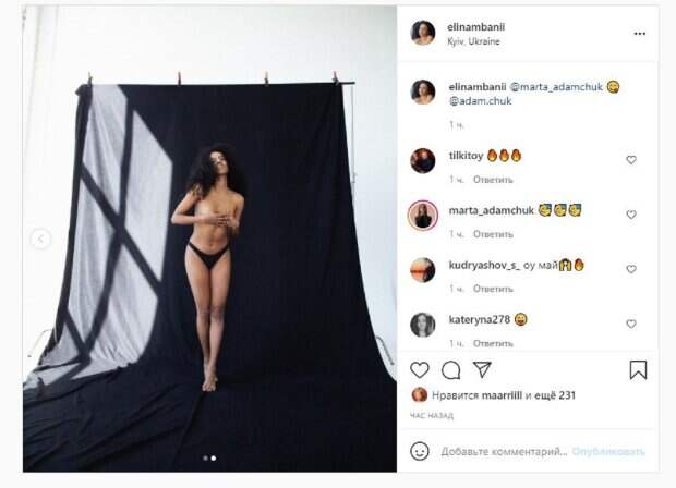 А еще у красотки есть хобби, она обожает делать фотографии. Чащего всего девушка работает со своими коллегами и этот раз не стал исключением. На новых фото Марты была изображена Элина. Мбани их опубликовала у себя в Инстаграм. Красотка на снимках позировала в одних трусиках. Девушка стояла на фоне черного полотна, прикрывши руками бюст, пока Адамчук снимала коллегу. Фанаты, включая дочь Елены Кравец Марию, поставили более 2 тысяч лайков и написали комментарии: "Оу май гад", "Круто", "Восхищен", "Эля, Огонь", "просто пушка, роскошная девочка", "Я тебя кохаю". Напомним, экзотическая красотка из "Женского квартала" поразила позами в короткой вышиванке А еще Politeka писала, что экзотическую красотку из "Квартал 95" в мини-бикини сравнили с Ким Кардашьян Также Politeka сообщала, что экзотическая красотка из "Женского квартала" показала точеную фигуру в одном боди