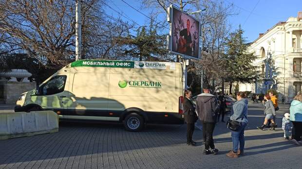 В Севастополе установили первые банкоматы Сбербанка, машины с надписью «Мобильный офис Сбербанка» появились сразу в нескольких местах города. Об этом 21 января сообщает телеканал «СТВ 24». Пока в мобильных банкоматах Сбера работает только функция снятия наличных с банковских карт. Но вскоре здесь можно будет пополнить карты и оплатить услуги.
