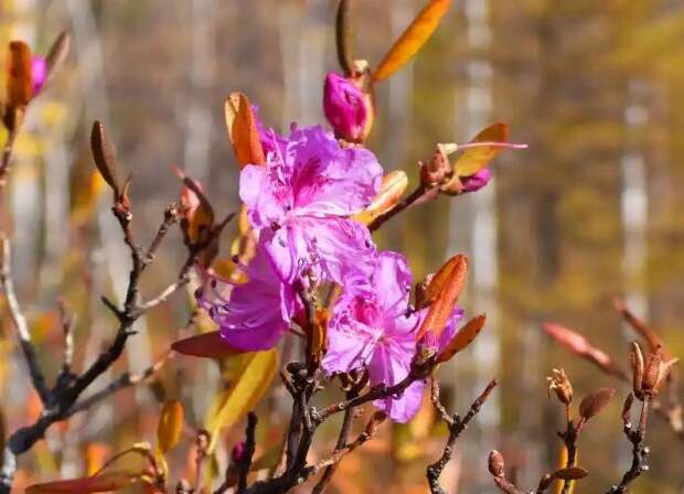 Рододендрон даурский распустился вблизи кордона «Енда» Сохондинского заповедника, 3 октября сообщает пресс-служба Министерства природных ресурсов Забайкальского края. «Вторичное цветение спровоцировала теплая погода. Это процесс, когда цветы появляются в нехарактерный для них период. Также отмечено цветение следующих травянистых растений: одуванчик лекарственный, скабиоза венечная, живокость крупноцветковая и одного из самых изящных и поздних травянистых растений семейства горечавковых — ломатагониума каринтийского», — сообщают специалисты заповедника.