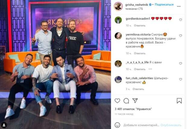 Известный телеведущий проектов "Україна має талант" и "Холостяка" с "Холостячкой" Григорий Решетник удивил кадром со съемок пост-шоу, на котором засветился с экс-участниками проекта. После каждого выпуска «Холостячки» выходит также пост-шоу, которое ведет Григорий Решетник. Перед очередным выпуском мужчина решил выложить кадр, который сопроводил короткой подписью.
