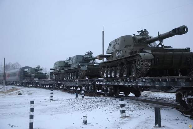 В Беларусь прибыл очередной эшелон с военной техникой из России. Военнослужащие РФ примут участие в совместных учениях "Союзная решимость-2022". Об этом сообщил тг-канал Минобороны Беларуси. Железнодорожный состав привез в Брест самоходные артиллерийские установки 2С3 "Акация". Их количество не раскрывается.