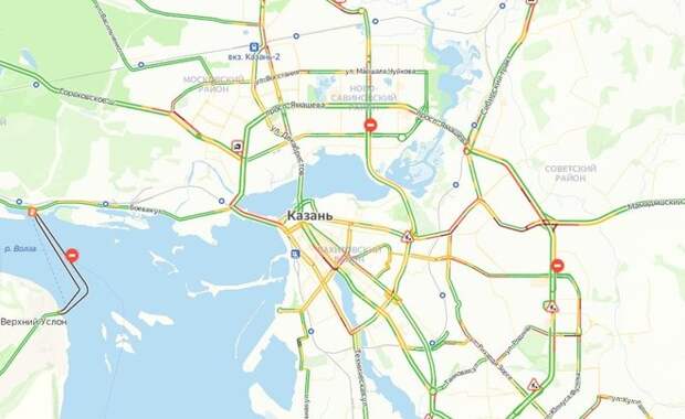Фото: скриншот Пробки образовались на улицах Петра Витера, Копылова. Длинный затор образовался на трассе М-7: он тянется с Kazan Ring и дальше Мусульманского кладбища. Подписывайтесь на telegram-канал и группу «ВКонтакте» «Реального времени».