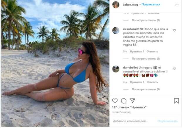 Многие отмечают, что фигура Анастасии очень сильно изменилась, а непропорциональные достоинства явно говорят о том, что девушка посещала хирурга и не раз. К тому же, Квитко сильно ретуширует кадры, чтобы ее кожа выглядела безупречно и роскошно. В небесно-голубом мини-бикини девушка понежилась на солнце и показала в очередной раз достоинства, повернувшись к камере полубоком. «Ты такая хорошая; Хороший самый четкий бикини; Вы - искушение женщины. Какая красота Рррррр; Теперь в другую сторону нашептало ..; синий рай, ломает гравитацию ...; Очень много работы по кузову ...; Почему песок изогнут ???; Удивительно