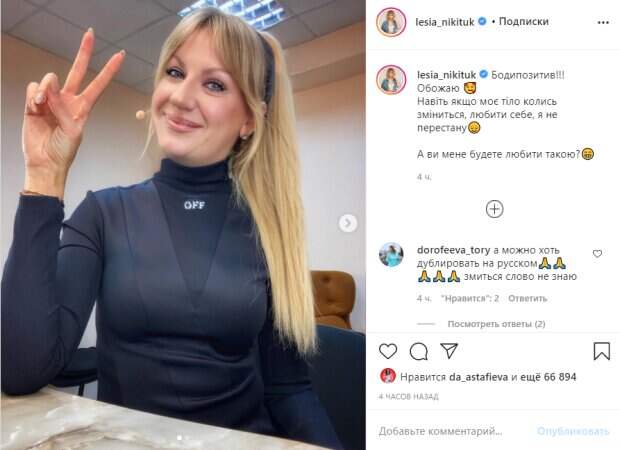 Кроме того, она поинтересовалась у своих поклонников, нравится ли им такое. «Бодипозитив!!! Обожаю