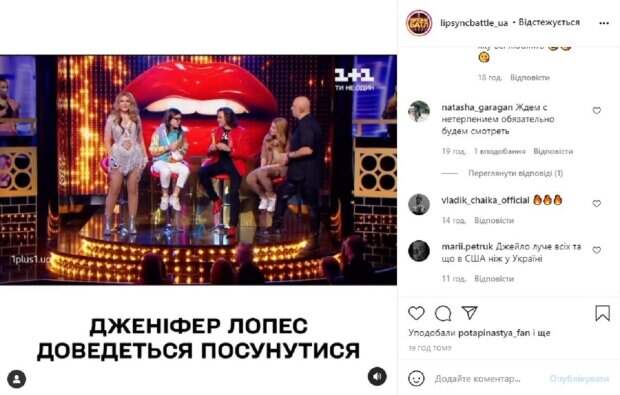 Как известно, Ольга Сумская липсила под хит Дженнифер Лопес "On the floor". Сумская приоделась в шикарный костюм, похожий на те, что носит всемирно известная дива. А также пыталась скопировать движения американской певицы. Для более яркого эффекта Сумская взобралась на пилон, чтобы полностью соответствовать образу. Она вскочила на пилон, потрясая ягодицами. Поддерживали Ольгу в студии Липсинка ее муж, актер Виталий Борисюк и две дочери. Младшая дочь на вопрос ведущего шоу рэпера Потапа, знали ли они, что мама "может устроить такой гармидер", ответила: "Дженнифер Лопес прийдется "подвинуться" после такого выступления!" Стоит сказать, что многим выступление смелой актрисы понравилось, однако большинство зрителей все же не поддержали такого перевоплощения. В паблике, под цитатой дочери Сумской несколько человек прокомментировали выступление и достойный ответ дочки Сумской, написав несколько приятныхз слов о самом шоу и о том, какая чудесная дочка растет у знаменитостей. Напомним, что 54-летняя Ольга Сумская на пилоне потрясла ягодицами, разозлив народ: "Кошмар, зря ты рискнула...", видео Как сообщала Politeka, 54-летняя Сумская опозорилась, переборщив с открытым ртом под фонограмму: "Не Лопес, а Юля Тимошенко в…" Также Politeka писала, что безбашенная Сумская на "Липсинк батл" поставила на уши украинский шоубиз, Зибров в экстазе: "Бомба! "