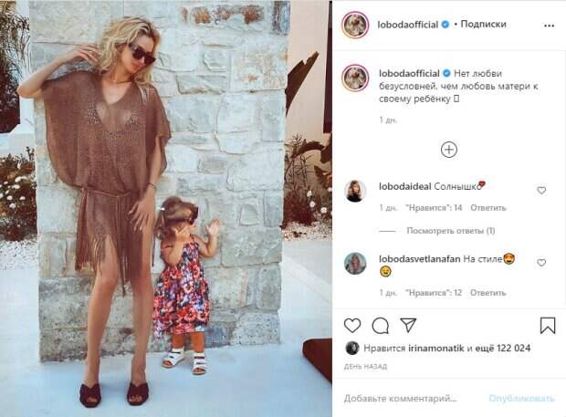 Раньше певица уже выкладывала в соцети совместные фото с Тильдой, однако до этого лицо девочки всегда было скрыто от глаз посторонних. На этот раз знаменитость изменила этому правилу: лицо ребенка видно полностью, его лищь чуть прикрыли солнцезащитные очки. "Нет любви безусловней, чем любовь матери к своему ребенку", – подписала снимок знаменитость. Поклонники восторженно восприняли новый снимок, оставив множество комментариев. Некоторые из них обеспокоены тем, что на ногах Тильды видны синяки. "На стиле