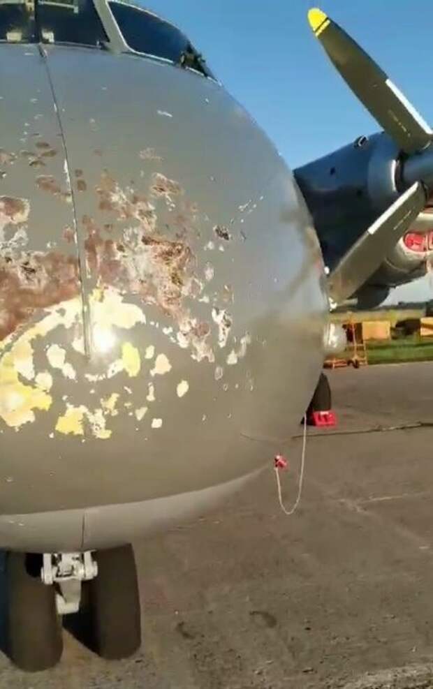 "Ан-26 попал в град под Васильковом. Парни рассказывали, что было очк*во", - передает автор видеоролика. На кадрах можно заметить, что самолет неслабо потрепало. Так на одном из двигателей возле пропеллера видны глубокие вмятины от градин. Кроме того, от сильных ударов пострадал нос воздушного судна, с которого сорвало краску. Ранее самолет потерпел крушение в Московской области. Транспортное средство рухнуло с неба в карьер с водой 27 июля, между 13-ю и 14-ю часами и сразу же затонуло, некоторые сильно поврежденные части остались торчать над поверхностью водоема. За авиакатастрофой наблюдали несколько очевидцев. По предварительным данным, на борту легкомоторного самолета находились два человека, которые погибли на месте. Пока только появились первые фотографии с места падения легкомоторного самолёта. Специалисты выясняют причины и обстоятельства трагедии. Напомним, Украина купила самолет-убийцу, от которого все отказались Как сообщала Politeka, американский военный самолет заметили недалеко от Крыма Также Politeka писала, что голый мужчина «терроризировал» самолет с россиянами