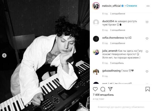 На другом фото, Бочаров уже сидит, одной рукой подпирая голову, а другую, сжав в кулак. Видимо, новая композиция не дается легко. Поклонники MELOVIN с нетерпением ждут нового хита и восхищаются внешностью артиста. «Красив до мурашек», «Вдохновляешь», «Красавец», «О, Боже», «Почему такой грустный?», «Прекрасен, как всегда», «Какой же ты няшка», «Как ты здесь на Гагу похож! Невероятно просто!