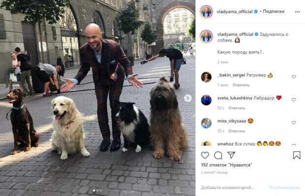 Счастливый артист решил посоветоваться с публикой. "Задумались о собаке.