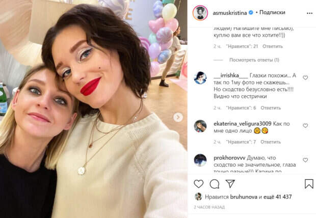 Но темненькой оказалась сама актриса. А вот за Кристину приняли ее родную сестру, эффектную блондинку Карину. «Комментарий в карусели подтолкнул меня выложить это фото отдельно. Мы с сестрой @karina____asmus действительно очень похожи и всегда были. Нас часто называли близнецами, хотя я старше Карины на 3 года. Но вот я покрасилась и мне интересно - сходство до сих пор очень сильное или уже не так?», - подписала фото звезда. В комментариях стали спорить по поводу схожести сестер. Одним девушки показались близняшками, а другие и вовсе не заметили сходства. «Теперь Карина больше похожа на Кристину, чем Кристина на Кристину», «Я, наверное, чего-то не понимаю, но, как вас можно перепутать!? Вы разные», «Как по мне одно лицо», «Она выглядит намного младше вас», «Глазки похожи... Сходство безусловно есть! Видно, что сестрички», «И теперь ваша сестра похожа на вас прежнюю больше, чем вы сами)))», «Для меня не похожи совсем)», - пишут люди. Напомним, что помятая и растрепанная Асмус ошарашила словами после Нового года: «Бедняжка». Как сообщала Politeka, довольную Асмус «застукали» с Харламовым после развода, камер не стеснялись: «Не могу насмотреться!». Также Politeka писала, что Асмус не сдержала чувств рядом с Харламовым и решилась на откровение: «Когда любишь и очень хочешь…».