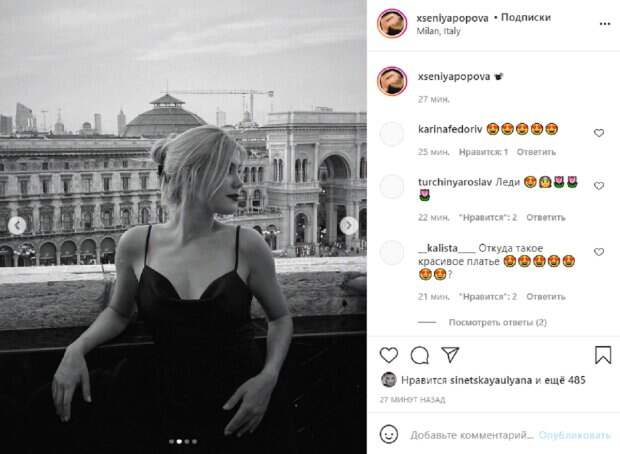 До этого она принимала участие в 8 сезоне вокального шоу "Х-Фактор", но не победила. Также Попова пробовала свои силы на украинском отборе на "Евровидение". Сейчас блондинка активно раскручивает свой Инстаграм, где делится с фанатами всем интересным, а также не упускает возможности показать себя во всей красе. На новом фото Ксения вышла на балкон в Милане. На ней было надето стильное черное платье, которое выгодно подчеркнуло ее точеную фигуру. Глубокое декольте приковало взгляды поклонников, ведь красотке есть, чем похвастаться. В комментариях фанаты восхитились тем, как выглядит подопечная Меладзе. Многих покорил ее женственный образ. "Картина", "Какая красивая", "Эстетика в чистом виде", "леди", "Откуда такое красивое платье?", - пишут в сети. Напомним, что Ксения Попова переборщила с декольте на отдыхе в Турции: красноречивые кадры. Как сообщала Politeka, Ксения Попова в прозрачном боди продемонстрировала достоинства фигуры: "Брежнева нервно в сторонке курит". Также Politeka писала, что Ксения Попова очаровала видом в топе с глубоким декольте: соблазнительное фото.