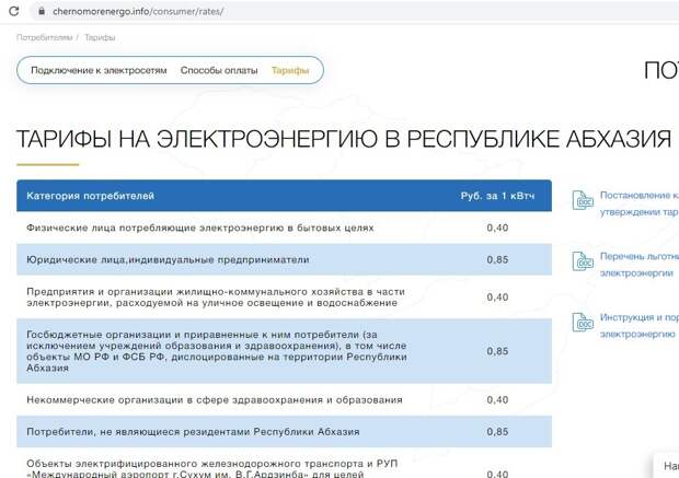 Если и есть на земле коммунизм, то наверное это в Абхазии. Как иначе объяснить ситуацию, что в республике до сих пор электричество для населения составляет 40 копеек, а многие вообще не пользуются электросчетчиком. Не верится такое чудо? Так загляните на сайт Черноморэнерго, где размещена таблица с тарифами на электроэнергию: Как видим, тариф 40 копеек за […] The post Почему в Абхазии электричество для населения по 40 копеек?