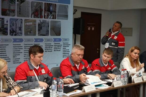 После чего с краткой презентацией выступил директор станции Сергей Олюнин. — Нижнекамская ТЭЦ (ПТК-1) — одна из крупнейших теплоэлектроцентралей Европы. Установленная электрическая мощность станции составляет 880 МВт, тепловая — 3 746 Гкал/ч. На станции эксплуатируется 10 турбоагрегатов, 16 энергетических и 5 водогрейных котлоагрегатов, — сообщил он. С краткой презентацией выступил директор станции Сергей Олюнин Основными потребителями тепла станции являются нефтехимические производства ПАО «Нижнекамскнефтехим», АО «ТАИФ-НК» и тепловые сети АО «Татэнерго». Нижнекамская ТЭЦ (ПТК-1) обеспечивает порядка 60% годового отпуска тепловой энергии на теплофикацию города Нижнекамска. По уровню экономичности и технологии производства станция занимает передовые позиции среди теплоэлектроцентралей России. Сергей Олюнин рассказал об основном оборудовании станции, принципиальной тепловой схеме, динамике изменений основных ТЭП. По его словам, инвестиции АО «ТГК-16» в основное оборудование и производственные фонды Нижнекамской ТЭЦ (ПТК-1) с 2010 по 2020 годы, с учетом капитального строительства и капитального ремонта, составили почти 6 млрд. рублей. Много планов впереди… — Общий объем планируемых инвестиций в техническое перевооружение и модернизацию основных производственных фондов Нижнекамской ТЭЦ (ПТК-1) на период до 2030 года составит порядка 18 млрд. рублей. Основные направления модернизации станции — это повышение надежности, безопасности, экономичности и экологичности производства, — добавил он. Представители СИБУРа в ходе совещания задали десятки вопросов, в основном они касались ценообразования, особенностей реализации инвестиционных проектов, а также хода работ по модернизации и ремонту оборудования. К слову, многие новшества электроэнергетической отрасли Татарстана внедряются именно на Нижнекамской ТЭЦ (ПТК-1). К одним из крупных ресурсосберегающих инвестиционных проектов последних лет можно отнести техническое перевооружение конденсатоочистки химического цеха №1, внедрение которого в содружестве с ПАО «Нижнекамскнефтехим» обеспечило прием в цикл станции возвратного промышленного конденсата. Особый интерес вызвали проекты технического перевооружения водоподготовительного оборудования двух химических цехов станции, выполненные в период с 2018 по 2019 года, в результате которых были внедрены наилучшие доступные технологии в области водоподготовки (высокоскоростные осветлители, мембранные модули очистки воды и пр.), увеличена производительность по выработке химически обессоленной воды высокого качества суммарно на 600 тонн/ч. Благодаря строительству нового газораспределительного пункта была реализована схема подачи топливного газа на Нижнекамскую ТЭЦ (ПТК-1). Раньше этот газ, побочный продукт производства Комплекса глубокой переработки тяжелых остатков нефти АО «ТАИФ-НК» просто сжигали на факельных установках. Теперь — это важный продукт для производства энергии. Эффект от внедрения получился двойным — экономический и экологический. — У нас очень много точек соприкосновения как в части нефтехимии, так и в части энергетики. Есть общие задачи, точки роста и направления развития. Можно посмотреть, как сделано друг у друга, чтобы не изобретать велосипед. Мы сверяем пути, выравниваем позиции, стараемся обменяться с