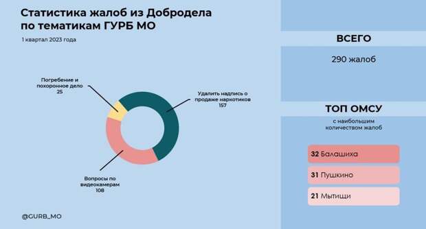 Подмосковный Центр управления регионом (ЦУР) принял за I квартал 2023 года 290 жалоб, вопрос которых контролирует Главное управление региональной безопасности Московской области, сообщает пресс-служба ведомства. Обращения жителей связаны с объявлениями о продаже наркотиков, камерами «Безопасного региона» и состоянием кладбищ.
