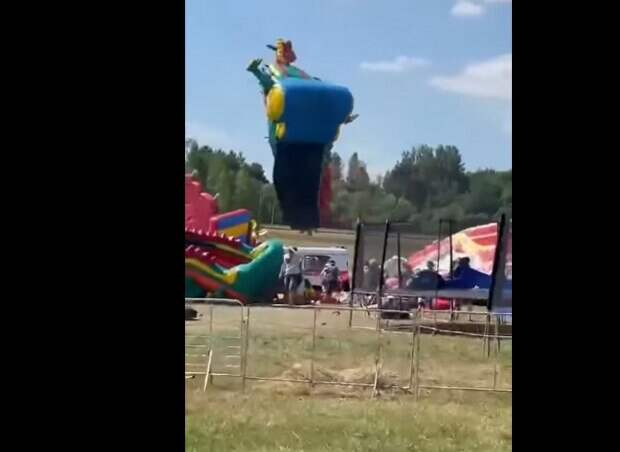 Ветром унесло надувные батуты на которых находились дети Момент ЧП запечатлели очевидцы на видео. В Беларуси, в городе Александрия пострадали пять человек, из которых двое дети. Они были госпитализированы в больницу. Вероятно, надувной аттракцион был плохо закреплен или же вообще не привязаны к земле.