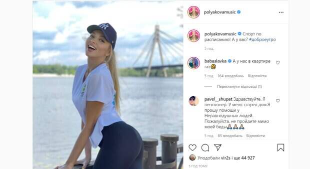 Полякова позирует возле воды, на фоне огромное озеро. "Спорт по расписанию! А у вас?" - написала артистка. Пользователи в комментариях разозлились на Полякову, что она идеальная и ведьма, пишут также, что использует много фотошопа. "Скільки фотошопа", "Идеальная...ведьма!