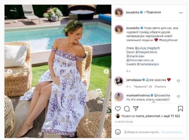 Можно Осадчую увидеть на нескольких фото с Горбуновым, а еще с сыном. "Новый праздник для нас, но прекрасный повод собрать друзей накануне рождения новой маленького человека. Бейби шауэр", - написала Катя. Отметим, что бейби шауэр - это вечеринка для будущей мамы и празднование в честь рождения будущего малыша. Обычай стал активно практиковаться ВМВ в США и стал довольно популярным среди и европейских стран. Джамала сразу прокомментировала фото: "Очень красиво" Маша Ефросинина тоже не стала молчать: "Ну, это очень красиво. Глаз не оторвать". Илона Гвоздева, звезда "Танців", также написала комментарий: "Поздравляю, Катюша, всех благ и счастья". Даша Астафьева, Вера Кекелия и другие украинцы также отреагировали на пост и писали комментарии: "Мальчик или девочка?", "Хорошая семья, очень идет беременность, счастья вам", "Непонятный праздник какой то.... обычно празднуют рождение, а вы зараннее". Напомним, Горбунов показал, как встречает Осадчую в их шикарном особняке А еще Politeka писала, что Горбунов показал помолодевшее лицо, примеряв стильный летний лук Также Politeka сообщала, что Горбунов тронул снимком с беременной Осадчей в венке и открытом наряде