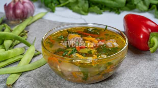 Идеальный рецепт приготовления сытного овощного супа с мясными фрикадельками и стручковой фасолью без картошки и лапши, который обязательно понравится многим и приятно удивит своими замечательными вкусовыми качествами! Ингредиенты На рецепт приготовления Мясной фарш 250 гр. (свинина + говядина) Репчатый лук 1 гол.