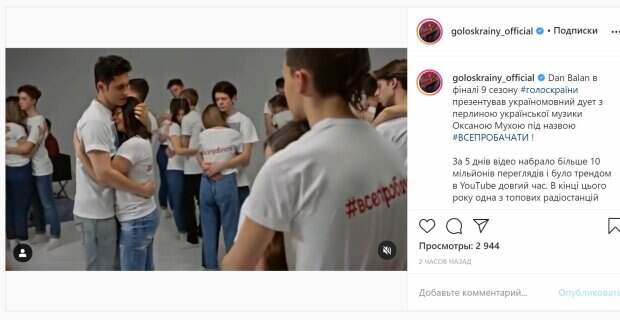 "Dan Balan в финале 9 сезона #голоскраїни представил украиноязычный дуэт с жемчужиной украинской музыки Оксаной Мухой под названием #ВСЕПРОБАЧАТИ! За 5 дней видео набрало более 10 миллионов просмотров и было трендом в YouTube долгое время. В конце этого года одна из топовых радиостанций внесла трек в чарт самых популярных песен года, разместив его на третьем месте", — похвастались под видео. Украинцы оставили множество восторженных комментариев, но многие сожалеют, что Балана не будет в новом сезоне "Голоса країни", и его "союз" с Тиной Кароль окончен. "Лучший тренер голоса країни