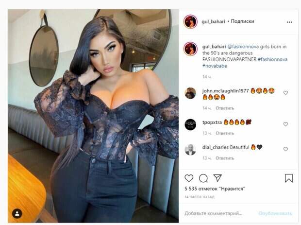 Известная модель Гюль Бахари, которую называют турецкой Кардашьян, показала себя и рассказала об опасности На фото красотка позировала в полупрозрачном корсете с громадным декольте. Образ Гюль дополнила джинсами, которые подчеркнули пышные ягодицы. Волосы у девушки были распущены, пока она стояла на фоне длинного дивана и зеркал.