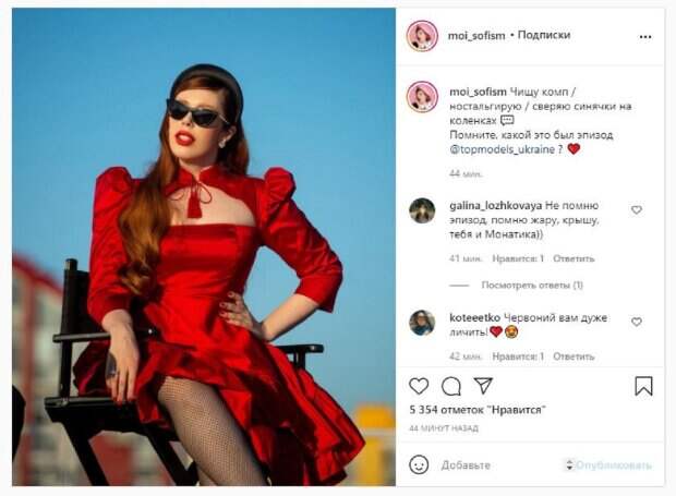 В этот раз Соня опубликовала фото в красном платье, очках и колготах. Так как наряд был немного задран, можно увидеть стройные ножки красотки. Но внимание привлекает другое - синяк, который видно через колготки. "Чищу комп / ностальгирую / сверяю синяки на коленках. Помните, какой это был эпизод", - написала Соня под фото. Фанаты поставили более 5 тысяч лайков и написали комментарии: "Не помню эпизод, помню жару, крышу, тебя и Монатика))", "Красный вам очень идет", "4 выпуск стмпу, испытание с монатиком", "А будут ли ещё выходить сезоны тмпу?". Сообщалось, известный фотограф и звезда "Супер топ-модель по-украински" Соня Плакидюк показала, как преобразилась, изменив цвет глаз. На фото Соня позирует вместе с подружкой-блондинкой, а на втором - сама. Девушка показывает превосходный мейкап, который подчеркивает ее красоту. Напомним, Плакидюк из "Супер топ-модель по-укарински" раскрыла секрет своей роскошной шевелюры А еще Politeka сообщала, что Плакидюк из "Супер топ-модель по-украински" поразила внешностью без роскошных рыжих волос Также Politeka писала, что Плакидюк из "Супер топ-модель по-украински", омолодившись, показала ножки в колготках