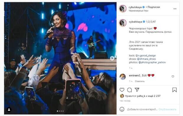 Не забывает Оля и об Инстаграм, где ведет активно свой блог. На новых фото, которые Цибульская опубликовала в социальной сети, красотка была в платье с прозрачными частями, а также вырезом от бедра. Как можно понять, девушка выступала на Черноморских играх в Скадовске. "1/2/3/4? Черноморские Игры! Уже соскучилась. Пересматриваю фотки. Лето 2021 запомню таким счастливым как ваши глаза в Скадовске", - написала Оля. Фанаты поставили более 2 тысяч лайков и написали комментарии: "Все супер", "2 огонь", "Слава Богу, за все", "Хорошие формы, тяжело не заметить", "Классный был ход с водой". Напомним, кума Дзидзьо Цибульская неожиданно обнародовала фото с младенцем на руках А еще Politeka писала, что кума DZIDZIO Оля Цибульская рассказала об уколах ботокса и что делает со своим лицом Также Politeka сообщала, что Цибульская в "апельсиновой" вышиванке похвасталась подросшим сыном, похожим на Дзидзьо