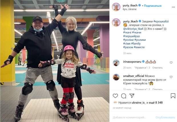 Звезда Студии «Квартал 95» Юрий Ткач показал, как весело проводит время с женой и дочерью Известный юморист поделился трогательным постом, в котором показал, на что их с женой вдохновила дочь Лиза. Об этом пишет Politeka.net. Так, на новом фото сам Ткач, его жена Виктория и их маленькая дочь позируют стоя на роликах.
