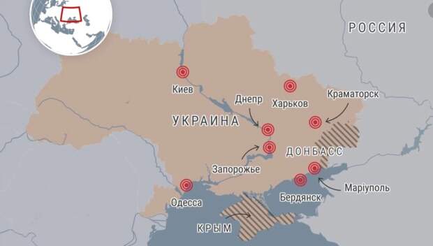 Для блокировки возможной посадки самолетов посадочные полосы, по сообщениям в СМИ, блокировали тягачами. В итоге Украина закрыла воздушное пространство. Сообщалось, что российские войска перешли границу в районе Харькова. Ближе к утру в целом ряде украинских городов, включая Харьков, Киев и Одессу, были слышны мощные взрывы, в сети появились видео происходящего. Видео из Харькова. https://klymenko-time.com/wp-content/uploads/2022/02/harkov.... https://klymenko-time.com/wp-content/uploads/2022/02/vzryvy-... Видео из Одессы. https://klymenko-time.com/wp-content/uploads/2022/02/odessa.... Появилось фото того, как под Харьковом якобы горят склады ВСУ. При этом происходили вбросы и дезинформация для нагнетания обстановки. Так, на видео обстрела якобы из Мариуполя были зеленые деревья, а значит, к событиям этой ночи оно не имело отношения. Согласно официальной информации Национальной полиции Украины на 9:10 утра: Броварской, в военном городке № 161 во время авиаудара сгорело здание и 4-х этажный дом, частично поврежден 3 и 4 этаж, военные проводят эвакуацию, работает ГСЧС и скорая. По предварительной информации, один погибший, один ранен и 5 еще пострадавших. В Конотопском районе под обстрел попал автомобиль, в результате чего пострадала женщина с ребенком. В Одесской области в городе Подольск на военной части 0173 бомбардировки, 6 погибших, 7 ранены, 19 без вести пропали. В городе Мариуполь Донецкой области в результате обстрела один человек погиб, двое ранены. В городе Кривой Рог Днепропетровской область три удара по составам 17 танковых БР и позициям боевого дежурства 4608 Краснополья, удар с БПЛА. Разбомблен мост через реку Ингулец. Корреспондент CNN Мэттью Ченс на включении из Киева со ссылкой на МВД Украины сообщил, что слышит серию взрывов, взрывы разбудили и многих киевлян. Вскоре стало известно, что взрывы слышны у аэропорта Борисполь под Киевом. В МВД сообщают также об обстреле одного из объектов Государственной приграничной службы Украины в Киевской области, по предварительным оценкам, из ракетных вооружений. При этом минобороны РФ заявляет, что российские вооруженные силы якобы не наносят никаких ракетных, авиационных или артиллерийских ударов по городам Украины, и гражданскому населению Украины угрозы якобы нет. Как отметили в ведомстве, высокоточными средствами поражения выводятся из строя военная инфраструктура, объекты ПВО, военные аэродромы и авиация Вооруженных сил Украины. В МВД сообщили, что заявления в российских СМИ о якобы уничтожении штаба ООС и несопротивлении украинской армии – фейки, а украинские войска ведут оборону по всем направлениям. Утром в Украине Верховная Рада 300-ми голосов ввела военное положение. А спикер ВР Руслан Стефанчук запретил депутатам выезжать из Киева, заявив: «Кто уехал – тот предатель». В МВД в нынешних условиях советуют гражданам пока до оповещения сирены находиться дома, но держать готовым «тревожный чемодан». По сообщению советника министра внутренних дел Антона Геращенко, утром на выездах из Киева огромные пробки. Он рекомендовал киевлянам не уезжать прямо сейчас, поскольку так они могут потратить много часов в пробках и на нервах. Не паниковать, оставаться дома и держать наготове «тревожный чемоданчик» призвал также мэр Киева Виталий Кличко. В любом случае, главное сейчас – не поддаваться панике и вести себя максимально аккуратно, по возможности находясь в безопасны