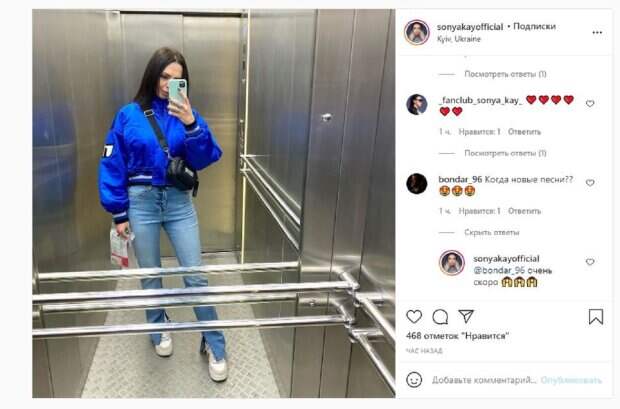 Не забывает артистка и об Инстаграм, где за ней следят десятки тысяч фанатов. Соня старается не разочаровывать украинцев и регулярно публикует там новые фото и видео. На новом фото Соня покрасовалась перед зеркалом в лифте. Певица была в джинсах и куртке, а образ дополнила сумочкой, которая видела под рукой. Артистка снимала сама себя на телефон, закрыв частично лицо. "Когда новые песни?", - просил один из фанатов. "Очень скоро", - заинтриговала Соня ответом. Фанаты поставили сотни лайков и написали комментарии: "Огонь", "Красотка", "невероятной красоты девушка. просто пушка". Напомним, единственный сын Ротару показал самых дорогих людей в жизни, фото А еще Politeka писала, что племянница Софии Ротару показала семейные фото, как выглядит родная сестра легендарной певицы Также Politeka сообщала, что замужняя племянница Софии Ротару засветилась в объятиях известного красавчика-певца