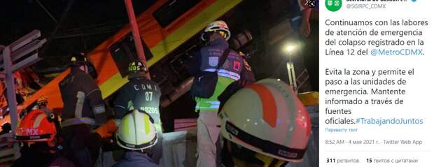 Напомним, 3 мая 2021 года вечером произошла крупная авария в метрополитене Мехико на 12-й линии. Обрушилась эстакада под проезжающим поездом, перевозившим пассажиров. Погибли 26 человек и пострадало еще более сотни. Это стало крупнейшей по числу жертв аварией в метро Мехико с 1975 года: тогда в результате столкновения двух поездов погиб 31 человек.