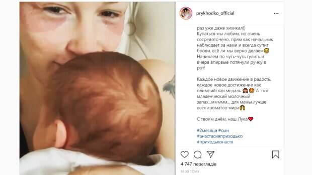 Известная певица Анастасия Приходько поздравила самого младшего сына с маленьким праздником Как сообщает Politeka.net, новым постом певица поделилась на своей странице в Инстаграм. Приходько решила показать свое маленькое счастье - сына Луку. Певица лежит с патчами под глазами и с легким хаосом на голове, а на руках ее маленький сын Лука, он вертит головкой, а она его баюкает.