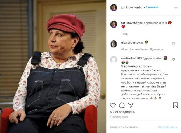 Звезда телесериала «Сваты» Татьяна Кравченко предстала перед поклонниками в неожиданном образе 66-летняя актриса украинского происхождения опубликовала новый снимок на своей странице в социальной сети Инстаграм, на котором позирует в очень стильном виде, передает Politka.net. Стандартные платья и платки полюбившейся всем сериальной Валюхи она сменила на джинсовый брючный комбинезон, под которым видна блуза в мелкий цветочек, и светло-бордовую кепку.