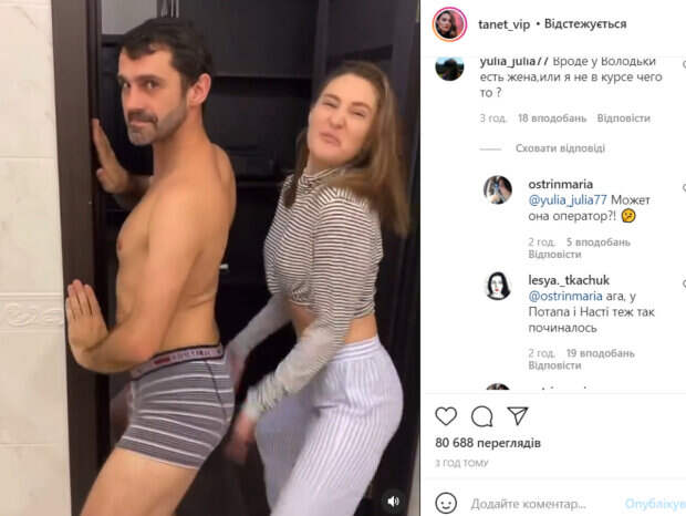 Он начал танцевать в дверях под известный хит Тик Тока. Таня не упустила шанс и подбежала к коллеге, пристроившись сзади. Она начала бить его по «пятой точке», подпевая под трек. Сама Татьяна была одета в домашние штаны и полосатую кофту, которую она подкотила, засветив плоский животик. «Танцюльки в трусиках», - коротко подписала Песик видео. В комментариях стали бурно обсуждать видео. Одни хвалили парочку за отменное чувство юмора, а другие стали подозревать их в романе. «Тренд можно закрывать», «Вроде у Володьки есть жена, или я не в курсе чего-то?», «Представляю, как тяжело было не заржать, когда снимали», «Володька, не позорь меня», «Вот это вы веселые и прикольные)))», «Надо отписаться чтобы больше этого не видеть», «Какие страсти», «Валяюсь», «ага, у Потапа и Насти тоже так начиналось», - пишут люди. Напомним, что брюнетка из "Квартал 95" задрала ножку, показывая вершину наслаждения: "Вашей маме зять не нужен?". А еще Politeka писала, что звезда "Женского квартала" в эффектном костюме станцевала "пятой точкой": "Татьяна, это бомба!". Также Politeka сообщала, что жгучая брюнетка из «Квартал 95» раззадорила фантазию, сверкнув лишним: «Ты способна на…».