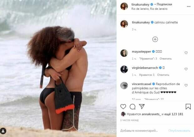 Звезда немного выпятила последние, демонстрируя "булочки" во всей красе. Упругие места смотрелись идеально в столь жарком купальнике. Кроме того, нельзя отвести взгляда от тонкой талии. Модель прижалась к своему седеющему мужу. Венсан обнял молодую красотку припав к ее шее и кудрявым волосам. Фото поразило своей красотой и идеальностью. От пары нельзя отвести взгляда, а за ними можно заметить поднявшуюся волну. "Объятия", - подписала снимок Тина. За три часа пост собрал более 100 тысяч лайков и массу комментариев. Пользователи сети написали много приятных сообщений в сторону идеальной пары и фигуры Кунаки. "Фантастическая пара", - написал один из поклонников. Ранее мы писали, что Тина Кунаки надела красный купальник, и посветила, можно сказать, шелковым телом. На голову модель надела платок, чтобы защититься от солнца. Тина обнимала супруга и улыбалась, а неизвестная женщина, рука которой попала в кадр, сняла кепку с лица Венсана. Напомним, Тина Кунаки надела черное платье с большим декольте, из которого выпрыгивала грудь. Благодаря крою бюст смотрелся соблазнительно в большом вырезе наряда. Юбка была немного расклешенной с большим разрезом по длине, из которого кокетка выставила длинные ножки. Звезда получила много приятных отзывов о себе. Молодая жена Венсана Касселя восхитила идеальным телом в тесном платье: «Сама загадочность». Молодая жена Касселя в белье блеснула крепким "орешком", оседлав жеребца: "Слишком..." Молодая жена Касселя без макияжа впечатлила размерами декольте, Беллуччи позавидует: "Моя сладкая..."