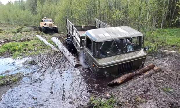 Итак, что же круче, советский внедорожный грузовик, или современный шоу-кар? Болото, в котором застрял ГАЗ-66. Фото: Youtube.com К сожалению поклонников советского автопрома, вынуждены констатировать: американо-советский ЗИЛ, на специальных шинах низкого давления, оснащенный коробкой-автоматом и мотором Chevrolet не оставляет «Шишиге» шансов на победу! На самом деле то как этот «Лесоруб» проезжает через болото, выглядит сюрреализмом! Причем «Шишигу» не спасла геометрическая проходимость и развесовка – во время заездов по бездорожью ЗИЛ-157 пришлось несколько вытаскивать застрявший ГАЗ-66. Даже в самом жутком болоте, «Лесорубу» удалось проезжать там, «Шишиге» приходилось ехать в объезд. На самом деле мало кто из серьезный внедорожников, включая Ленд Круизеры, вообще рискнут заехать в такую грязь. Да тут неглубоко, вам по пояс будет! Фото: Youtube.com Так что-же, очередная победа американского автопрома над отечественным? К чести ГАЗ-66 нужно отметить, что за исключением нескольких моментов, когда «Шишига» все-таки «садилась», ей удалось проехать там-же, где проезжал этот, с позволения сказать, «ЗИЛ-157». Давно известно, что шины – это пол-машины. Вот и в этом видео, большую часть преимущества «Лесоруб» получил за счет специальных покрышек. Но самое главное то, что по словам авторов канала «Combat Crew» за рулем «Лесоруба» кайфуешь, тогда на «Шишиге» приходится работать! Проходимость российско-совестко-амриканской техники впечатляет! Фото: Youtube.com Конечно было бы любопытно увидеть, как эти два грузовика поменяются шинами, и вновь окажутся на бездорожье. Но таких планов у ведущих youtube канала нет.