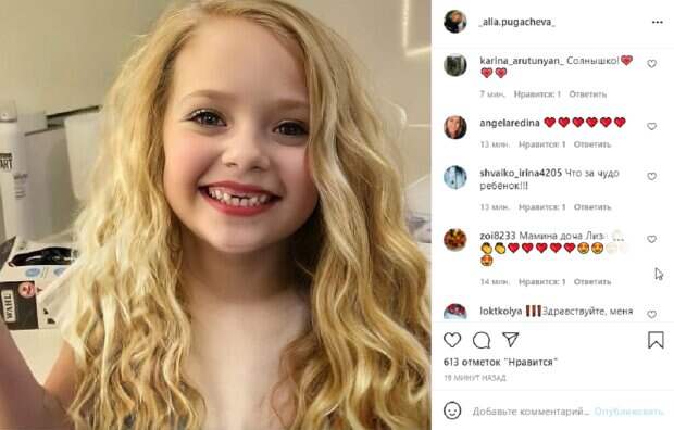 Но также заметно, что маленькая Лиза накрашена, как взрослая девушка. В частности, у нее подкрашены глаза и губки. «Красотка Лизок», - говорится в подписи. Фанаты звездного семейства не смогли пройти мимо и бурно отреагировали на фотографию. Они пишут, что малышка вырастет настоящей красоткой, а также увидели сходство с ее мамой Аллой Пугачевой. «Куколка», "Мамина доча Лиза", "Что за чудо ребёнок!!!", "Солнышко", "Красавица", "Да, нет слов, будь счастлива!", "На маму очень сильно похожа", - высказались в сети. Напомним, что Галкин показал, с кем проводят время его с женой малыши. Как сообщала Politeka, Галкин похвастался хозяйством жены и впечатлил откровением: «У нас в Одессе…». Также Politeka писала, что дочь Максима Галкина "перетанцевала" извивающуюся внучку Пугачевой: "Лиза - это нечто!"