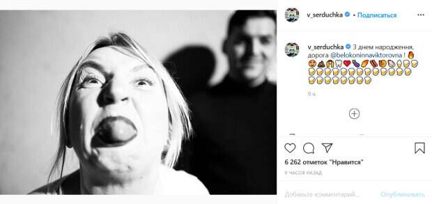 net. В публикации Верка поздравила свою коллегу с праздником. «С днем рождения, дорогая Инна!», - говорится в подписи. Свою запись Сердючка в исполнении Андрея Данилко сопроводила множеством смайликов, в том числе в виде многочисленных бокалов пива. Также артист опубликовал черно-белую фотографию Белоконь. На ней актриса позирует без традиционного образа мамы Верки Сердючки. При этом, она замерла в забавной позе, показывая язык в камеру. Стоит отметить, что на снимке она выглядит очень молодо. Поклонники знаменитости тут же присоединились к поздравлениям своего кумира в комментариях. «Ура! С днём Рождения, самая позитивная и самая лучшая мама Украины», «Ну Мамуля!! Шикарная Тётка», «Не каждая женщина может позволить себе быть смешной!!! Здоровья Инне и оставаться энергичной и позитивной!», «Инну поздравляю с Днём рождения, здоровья неиссякаемого, любви, удачи, вдохновения, семейного тепла и позитива во всем», «Красотка от Бога», «Это экстаз!!! С днем рождения, Инночка», «Хоть бы расчесалась», - пишут украинцы под постом звезды. Напомним, помолодевшая мама Верки Сердючки ошеломила внешностью в день рождения: "Лет 20 максимум". Как сообщала Politeka, выяснилось, куда пропала Верка Сердючка: "Сил нет, а поэтому и особого желания тоже". Также Politeka писала, что изменившаяся Верка Сердючка показала новую себя, шортики - отпад: "Мама, я влюбилась!".