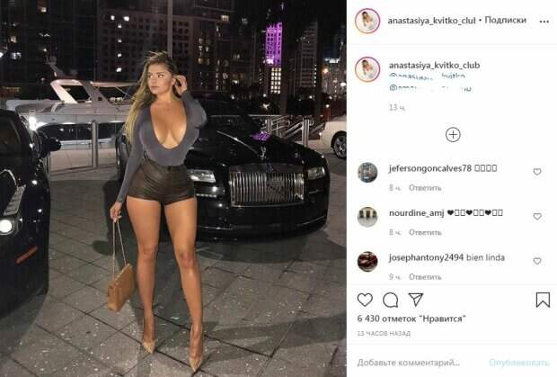 Анастасия предстала в обтягивающем топике с огромным декольте, из которого просто выпрыгивала грудь. Прелести без белья находились в "опасном" положении, и, казалось, от неловкого движения могут выпрыгнуть из выреза. Также красотка надела обтягивающие мини-шорты, которые обтянули ее упругие ягодицы и подчеркнули стройность талии. Туфельки-лодочки на шпильках не только смотрелись эффектно, но также удлинили ножки. Завершила образ сумочка на цепочке. Модель смотрела в сторону, при этом ветер развеивал ее волосы. Фото было сделано на причале, возле дорогих машин. За 13 часов оно собрало более 6000 лайков и много комментариев. Пользователи сети написали много приятных сообщений красотке. "От видов бросает в жар", - написал один из поклонников. Напомним, Анастасия Квитко позировала в вязаных топе с большим декольте, из которого едва ли не выскальзывал бюст, и в длинной юбке. Из выреза кокетка выставила стройные ножки. Модель распустила волнистые волосы, и повернула голову вбок. Глаза красотки были закрыты, а губы она немного выставила вперед. Ранее сообщалось, что Анастасия Квитко предстала в рваных штанах и "невидимом" топе. Красотка стоит у панорамного окна, а волосы оставила распущенными. Девушка в руке держит телефон, показывая там что-то. Напомним, русская Кардашьян без лифа прогулялась по улице, сверкая "арбузиками" А еще Politeka писала, что русская Кардашьян приспустила топ и явила миру свои "поспевшие дыни" Также Politeka сообщала, что русская Кардашьян поражает размерами своего бюста, ни одно декольте не выдержит