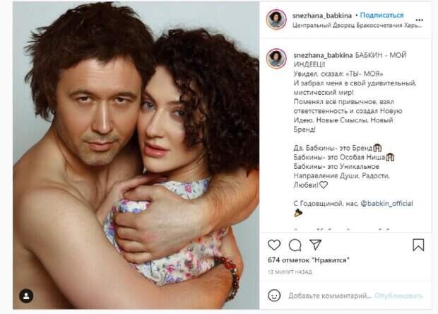 Этот раз не стал исключением, Снежана опубликовала фото, где стоит в объятиях раздетого мужа. Сергей покрепче сжал красавицу-жену, демонстрируя уверенность. "БАБКИН - МОЙ ИНДЕЕЦ‼️ Увидел, сказал: «ТЫ- МОЯ» И забрал меня в свой удивительный, мистический мир! Поменял всё привычное, взял ответственность и создал Новую Идею, Новые Смыслы, Новый Бренд! Да, Бабкины- это Бренд Бабкины- это Особая Ниша Бабкины- это Уникальное Направление Души, Радости, Любви! С Годовщиной, нас", - написала Снежана. Фанаты поставили несколько сотен лайков и написали комментарии: "Любви вам необъятной, как Вселенная", "Поздравляю от всей души", "Вы чудесная пара! С праздником!". Мы писали, что жена музыканта Сергея Бабкина Снежана после измен звездного супруга поставила точки в разговорах о ее семье. У себя в Инстаграм женщина опубликовала яркий семейный снимок, где расстаяла в обьятиях любимого. Напомним, изменщик Бабкин неожиданно показался со своим "близнецом" и не сдержал эмоций А еще Politeka писала, что Снежана Бабкина после измен мужа расцвела и показалась в смелом мини Также Politeka сообщала, что помятый Бабкин после скандального признания об изменах огорошил новыми откровениями