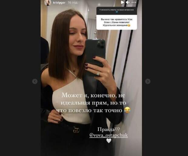 Сперва Кристина разместила приятную фразу от поклонницы, которая написала, что Остапчуку очень повезло с Кристиной, ведь та, по мнению поклонницы, идеальная женщина: "Вы мне так нравитесь! Как Вове с Вами повезло! Идеальная женщина!". На что Кристина ответила: "Может я, конечно, не идеальная прям, но то, что повезло, это точно. Правда??? Вова?", - написала девушка разместив фото, на котором позирует в белом топе и черном кожаном пиджаке. Девушка на фото явно нравится себе, поэтому Кристина решила сделать еще небольшой экскурс, показав кожаные наряды. В следующем сторис Кристина предстала в кожаных пиджаках: коричневом и черном. Кристину спросили, сколько стоят ее пиджаки. "Сколько стоит ваш кожаный пиджак?" "13 тыс" - коротко написала жена знаменитого ведущего под одним и вторым нарядом. Недавно Кристина, вторая жена известного ведущего, показывала апартаменты дома, где бы они с Вовой могли свить свое "семейное гнездышко". и делилась с поклонниками планами, показав домик своей мечты. Напомним, что Остапчук с женой укатили из Киева и показали, как надо кайфовать: «То есть вёдрышко наливки...» Как сообщала Politeka, Остапчук не знает, где и с кем сейчас его дети, новые детали скандала: "Это просто кошмар" Также Politeka писала, что новая жена Остапчука затаила обиду на Осадчую, детали скандала: "Я давно советую. .."